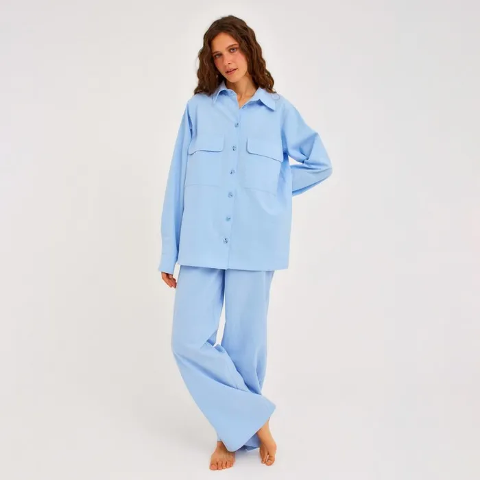 Пижама женская (сорочка, брюки) MINAKU: Home collection цвет голубой, р-р 52 — Характеристики
