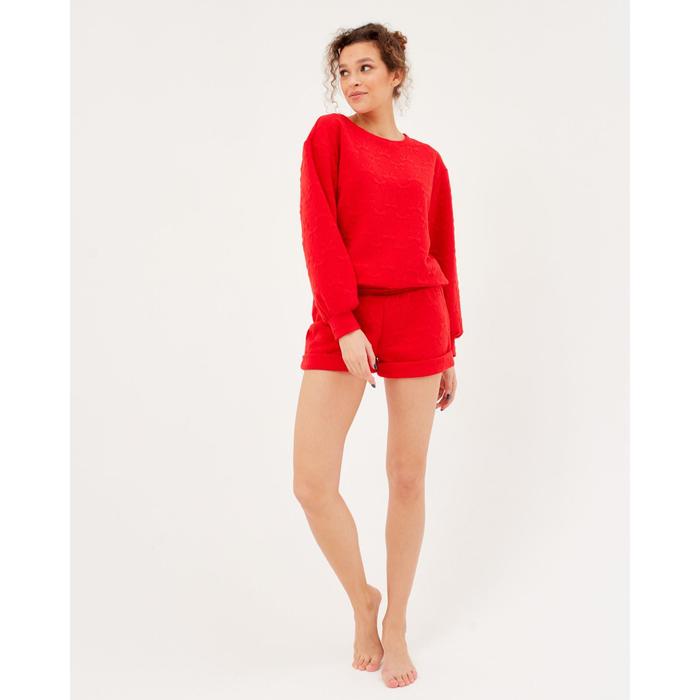 Пижама женская (свитшот, шорты) MINAKU: New happy, размер 48, красная — Характеристики