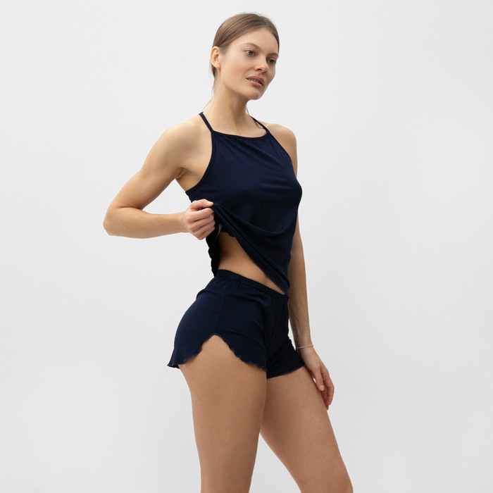 Пижама женская (топ, шорты), размер 46, тёмно-синяя