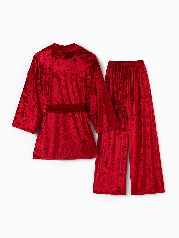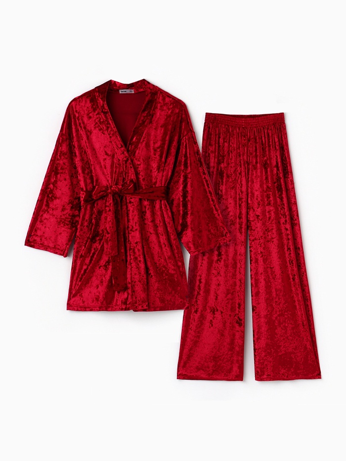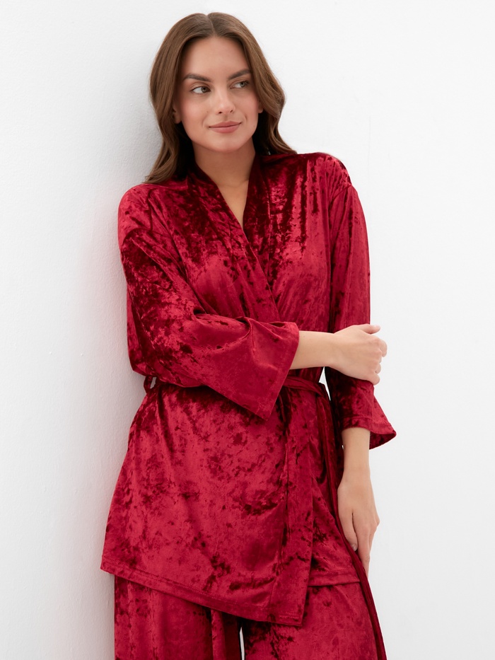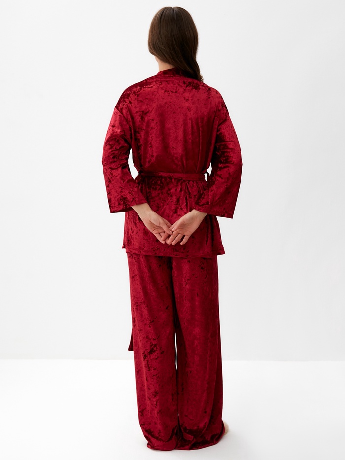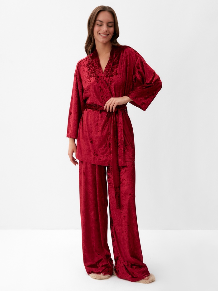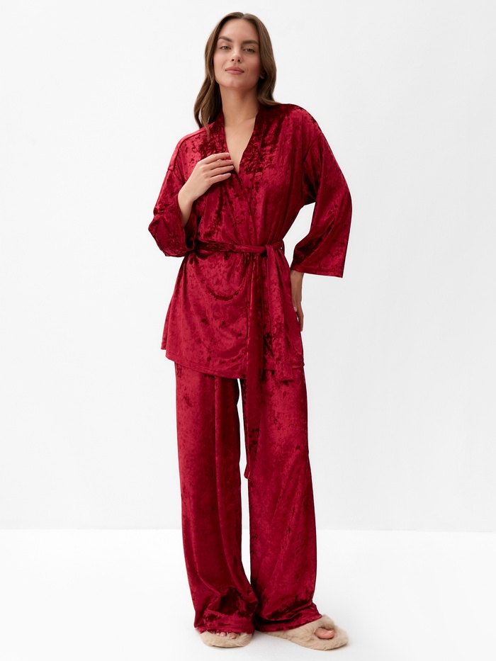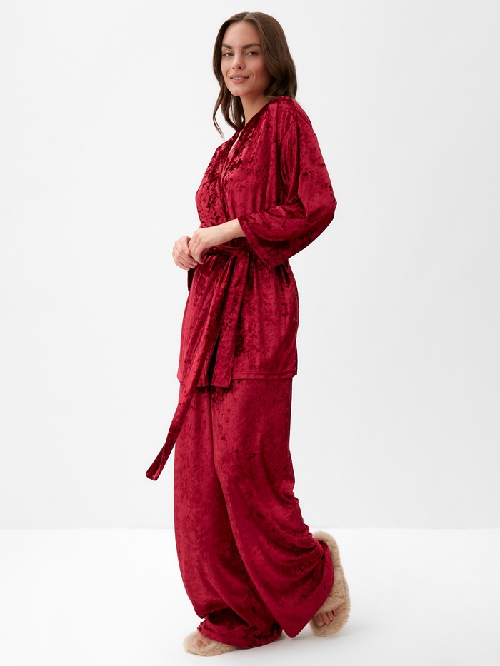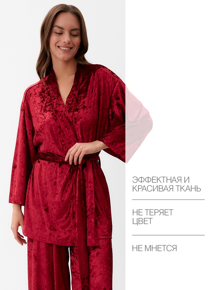 Пижама женская (жакет, брюки) KAFTAN «Бархат», размер 40-42, бордовая — Характеристики