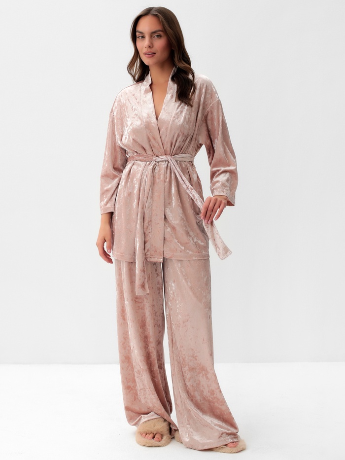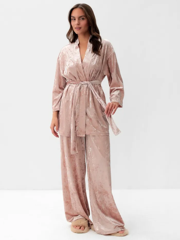 Пижама женская (жакет, брюки) KAFTAN «Бархат», размер 48-50, розовая — Характеристики
