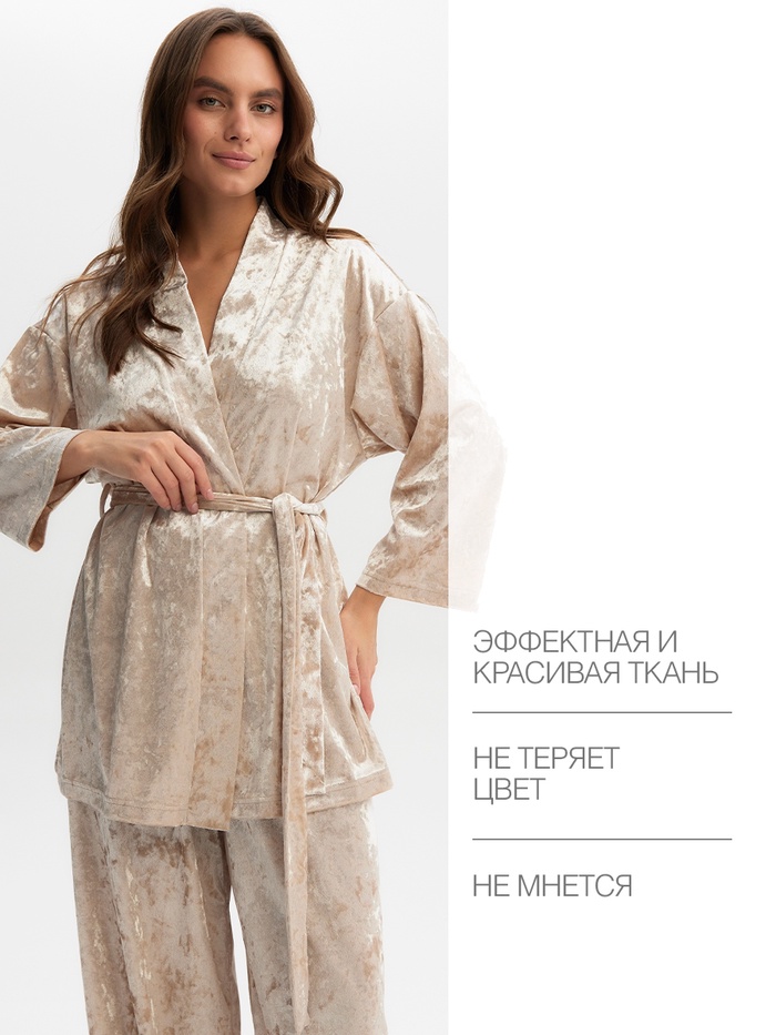Пижама женская (жакет, брюки) KAFTAN Velvet, размер 44-46, бежевая — Характеристики