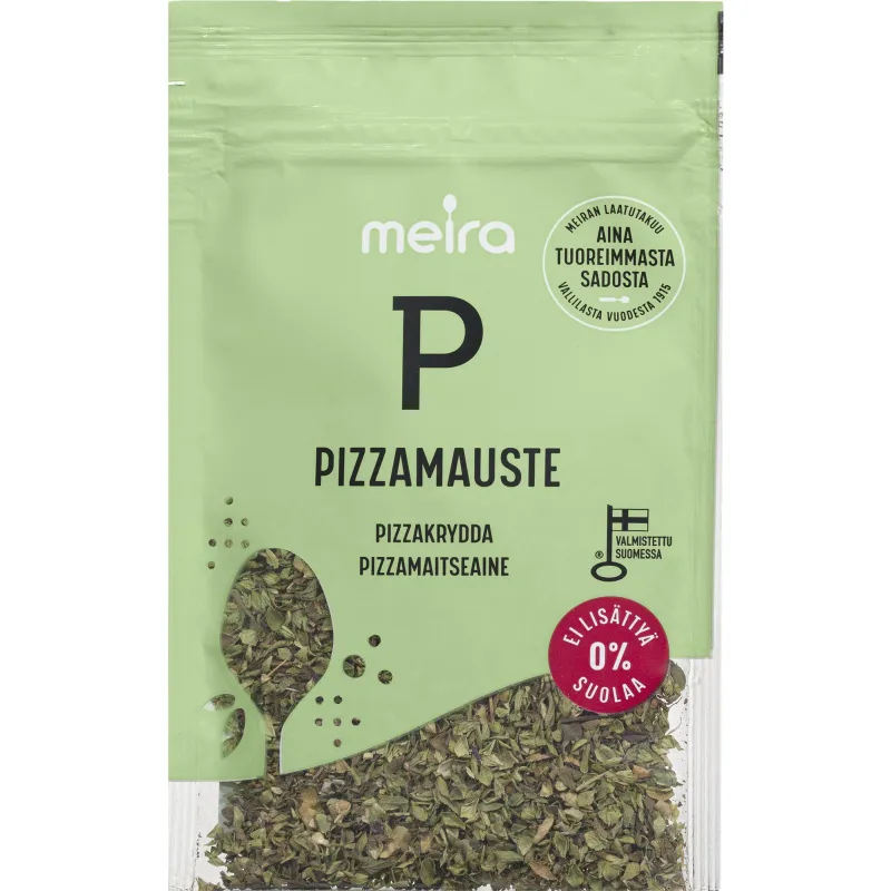 Приправа для пиццы Meira – это готовая смесь специй для придания насыщенного вкуса вашим пиццам, а также блюдам из мяса и овощей. Пакетик весом 10 г удобно хранить и использовать. Мы постоянно обновляем информацию о продукции, но всегда рекомендуем проверять данные на упаковке.
