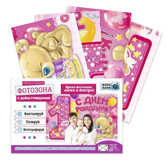 Плакат для фотозоны «1 годик», девочке, набор из 4 шт., 120×80 см — Характеристики