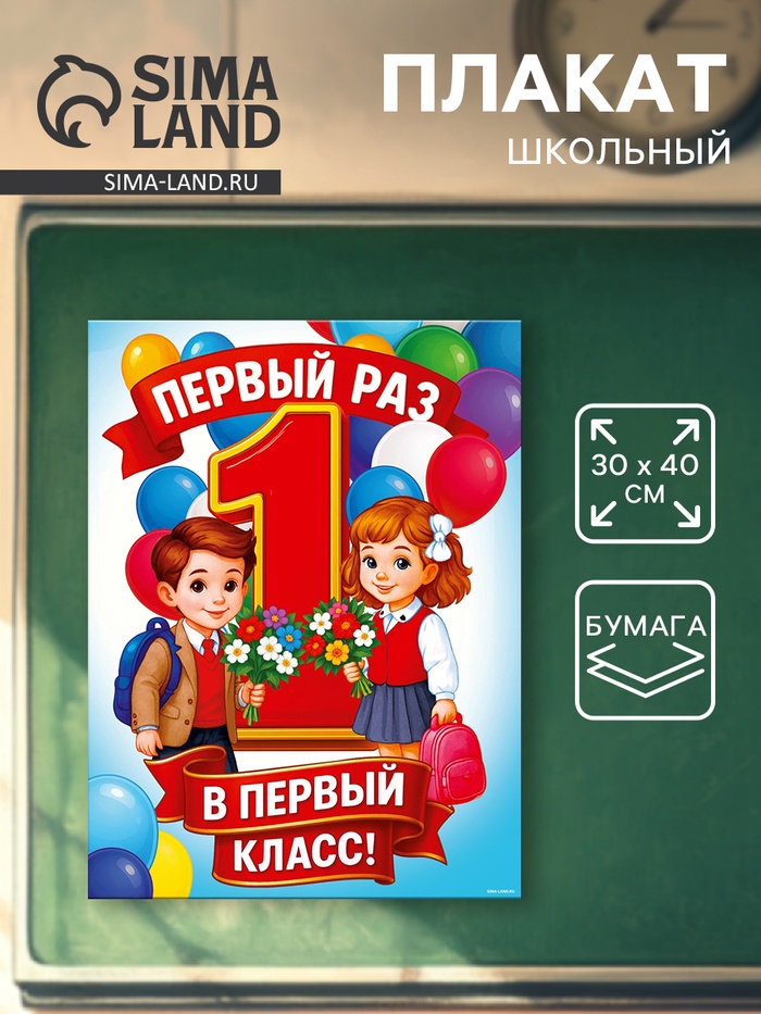 Плакат на 1 сентября «Первый раз, в первый класс» 30×40 см — Характеристики