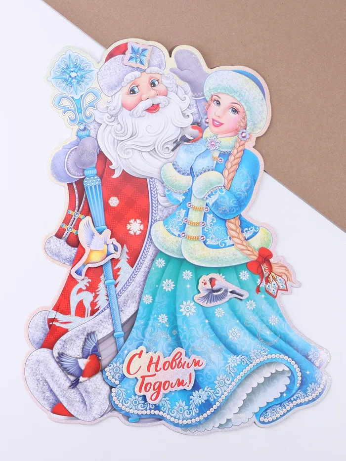 Плакат на стену «С Новым Годом!» Дед Мороз, Снегурочка, 30×40 см — Характеристики