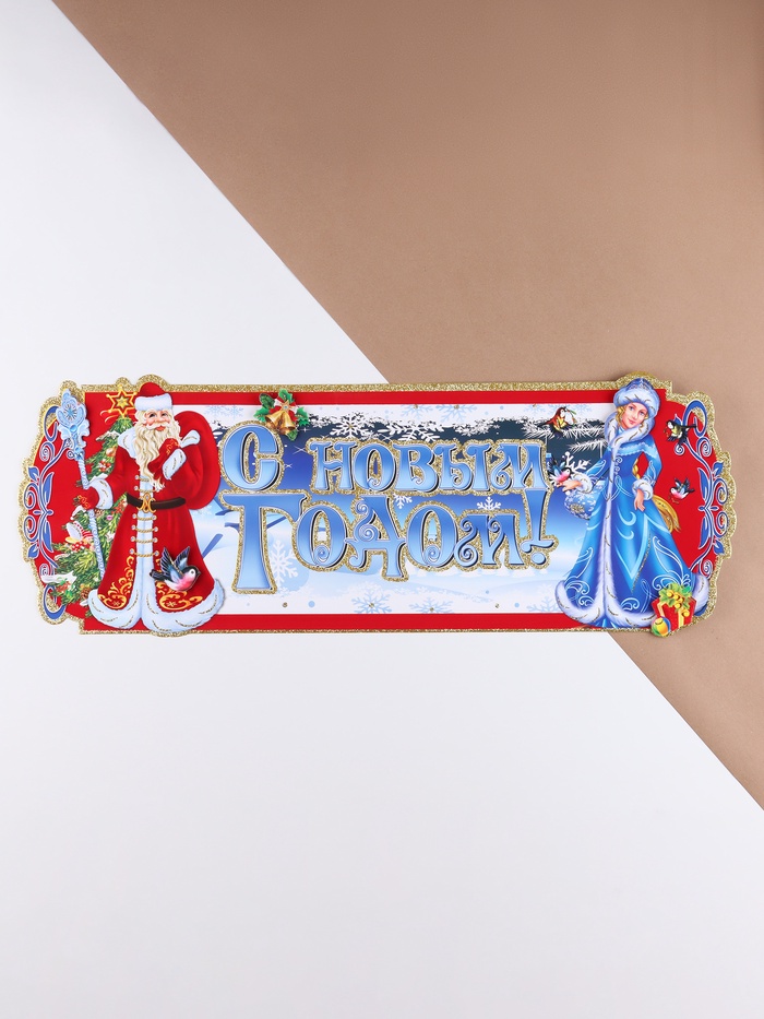 Плакат на стену «С Новым Годом!» Дед Мороз, Снегурочка, 24×64 см
