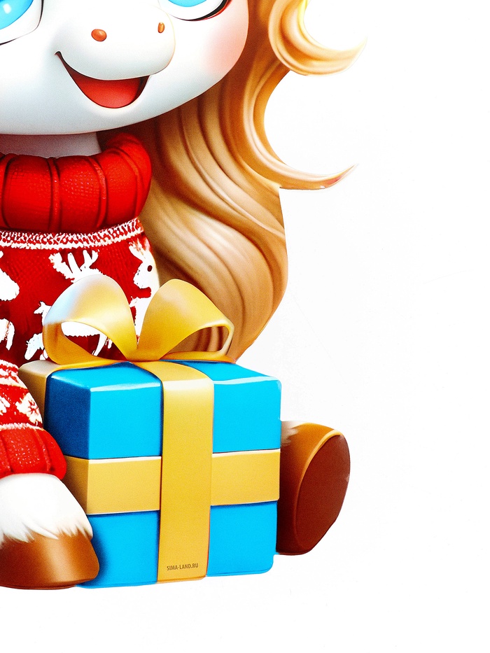 Плакат новогодний «С новым годом», лошадка с подарком, 39.1×48 см — Характеристики