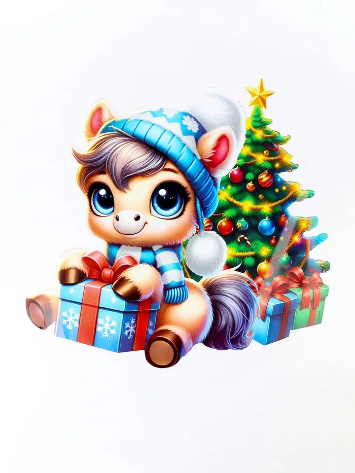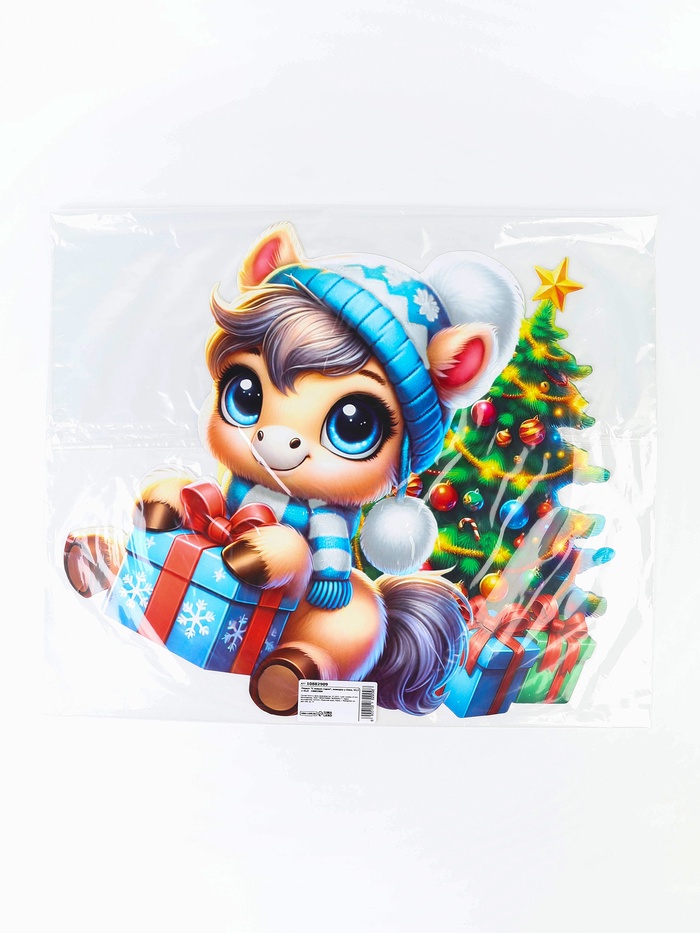 Плакат новогодний «С новым годом», лошадка у ёлки, 43.3×43.9 — Характеристики