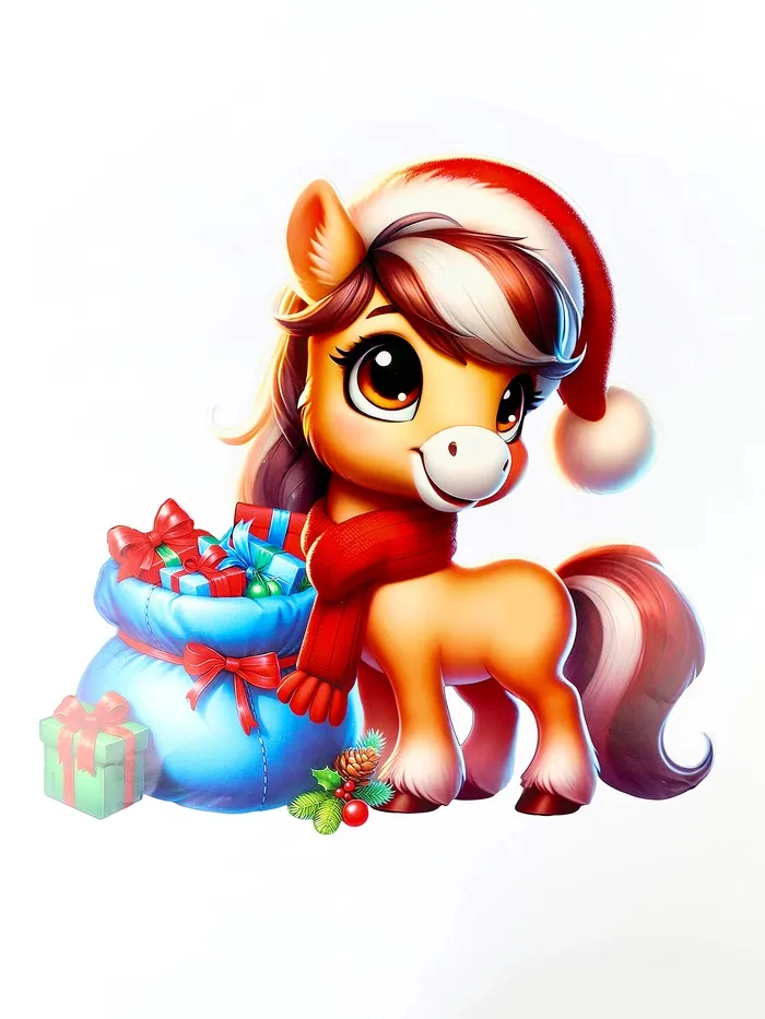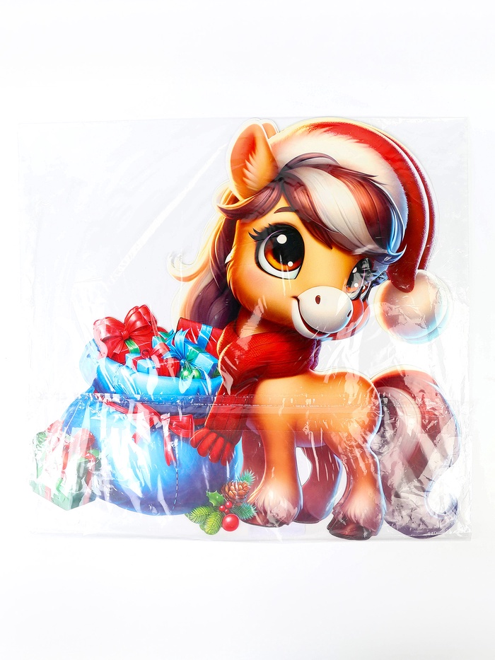 Плакат новогодний «С новым годом», лошадка у подарка, 48.2×27.9 см — Характеристики