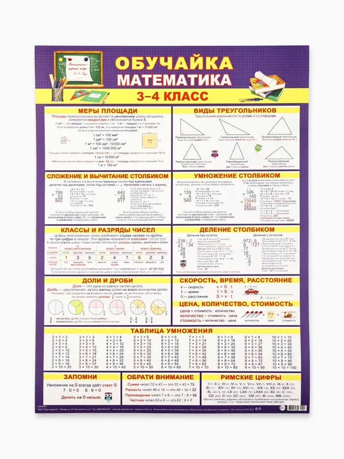 Плакат «Обучайка по математике 3-4 класс» А2 — Характеристики