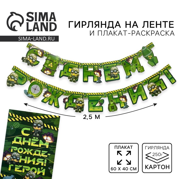Гирлянда и плакат «С Днем Рождения», военная,16 х 21 см