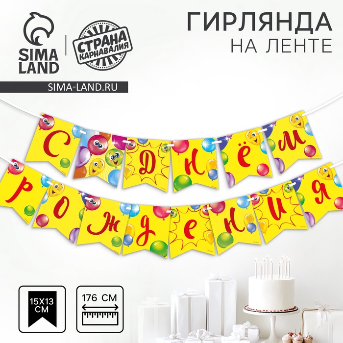 Гирлянда на ленте «С Днём рождения», 215 см