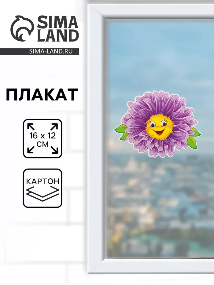 Плакат вырубной «Астра» глиттер, сиреневый цвет, 16×12 см — Характеристики