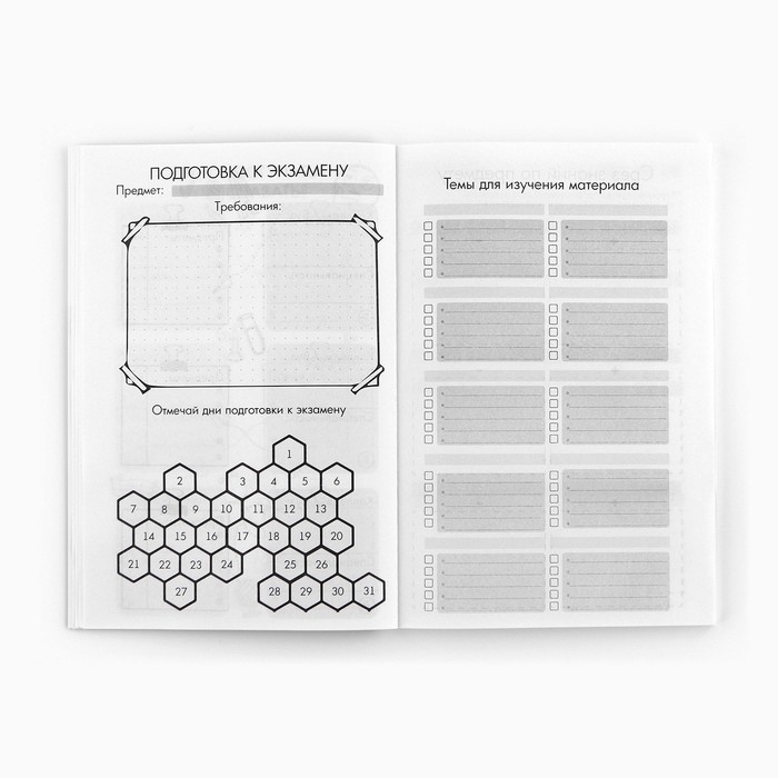 Экзамены на носу, а о подготовке не было и речи? Знакомая всем ситуация. Этот планер поможет быстро и эффективно проанализировать информацию, грамотно распределить свое время. А самое главное, не упустить важные моменты, несмотря на стресс.