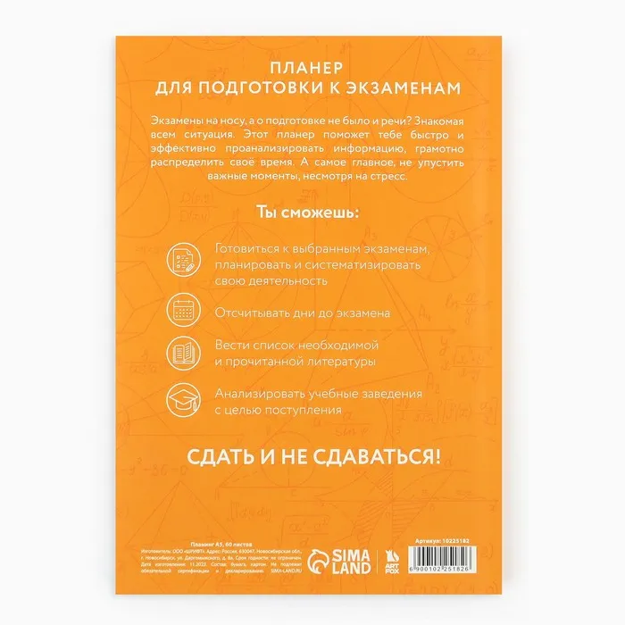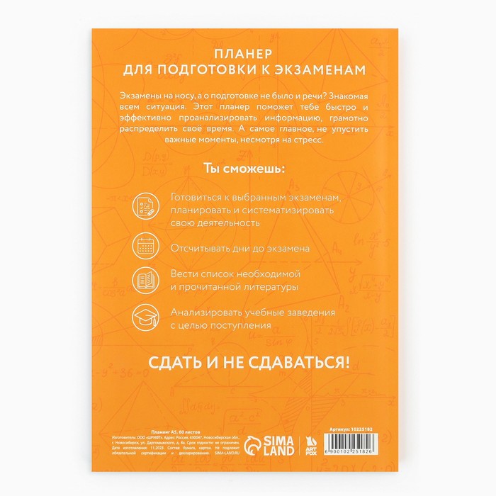 Планер для подготовки к экзаменам, А5 60 л. Мягкая обложка «Кот» — Характеристики