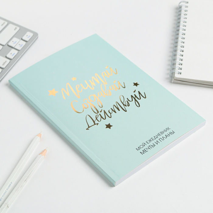 Планер-ежедневник в тонкой обложке с тиснением «Мечтай. Создавай. Действуй», мятный, А5, 80 листов — Характеристики