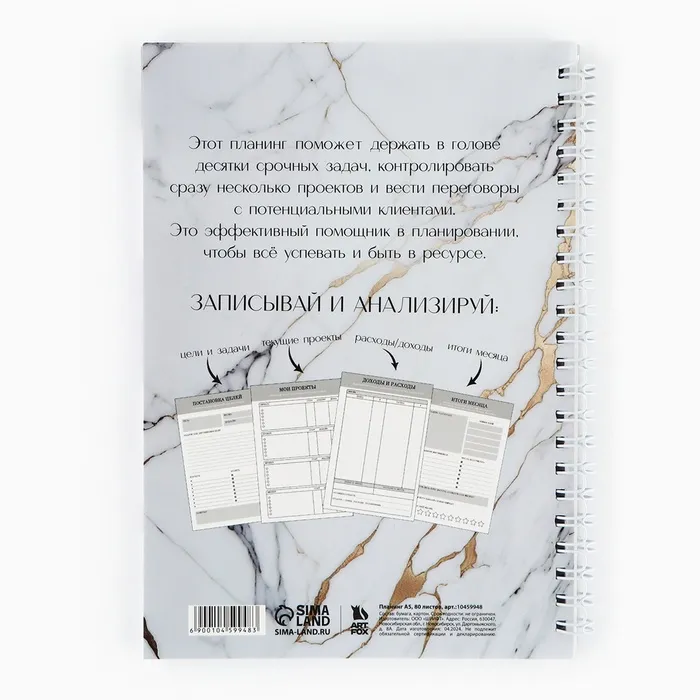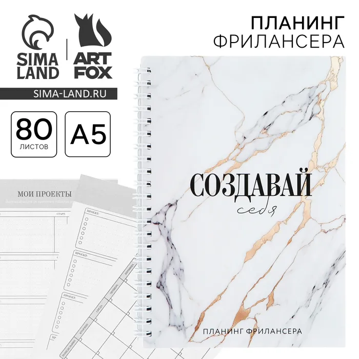 Планер фрилансера «Создавай себя» мрамор А5, 80 л. — Характеристики