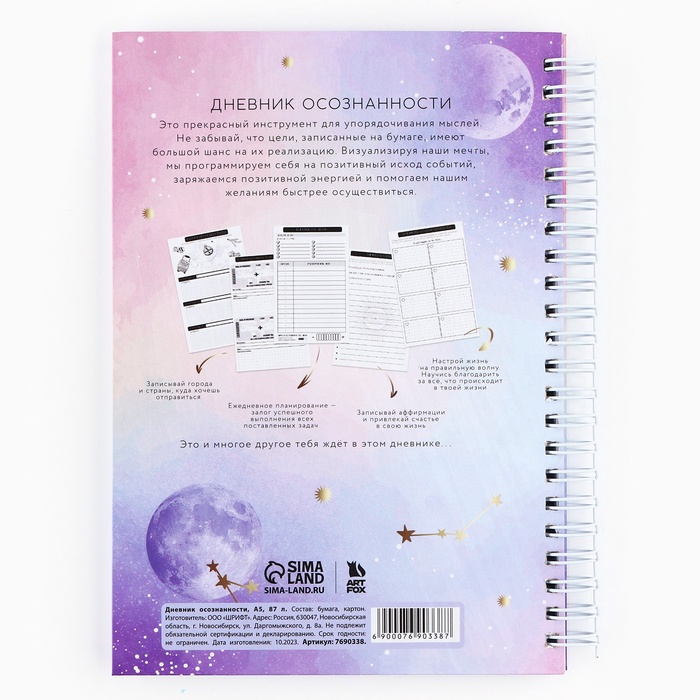 Планер осознанности «Вселенная внутри тебя», в твёрдой обложке с тиснением А5, 86 л — Характеристики