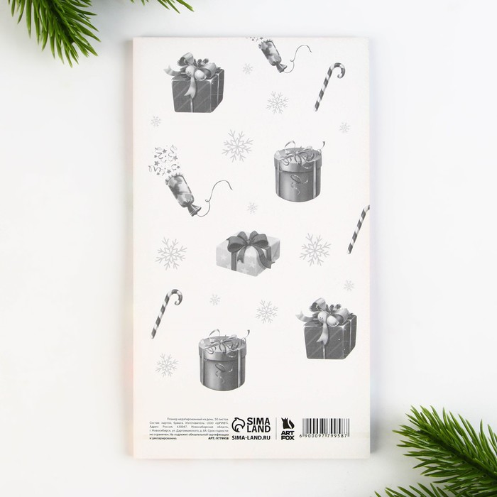 Планер с отрывными листами, 100×180 мм, 50 листов, недатированный на день «Новый год: Исполнения желаний» — Характеристики
