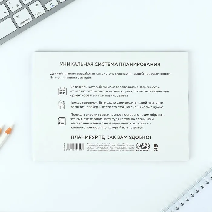 Планер с отрывными листами А5, 40л. Мягкая обложка «Панда» — Характеристики