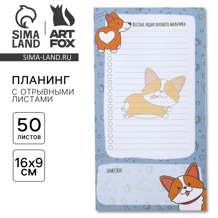 Планер с отрывными листами «Корги» 100х180 мм, 50 листов — Характеристики