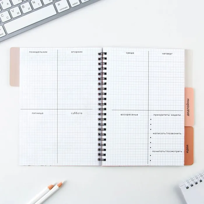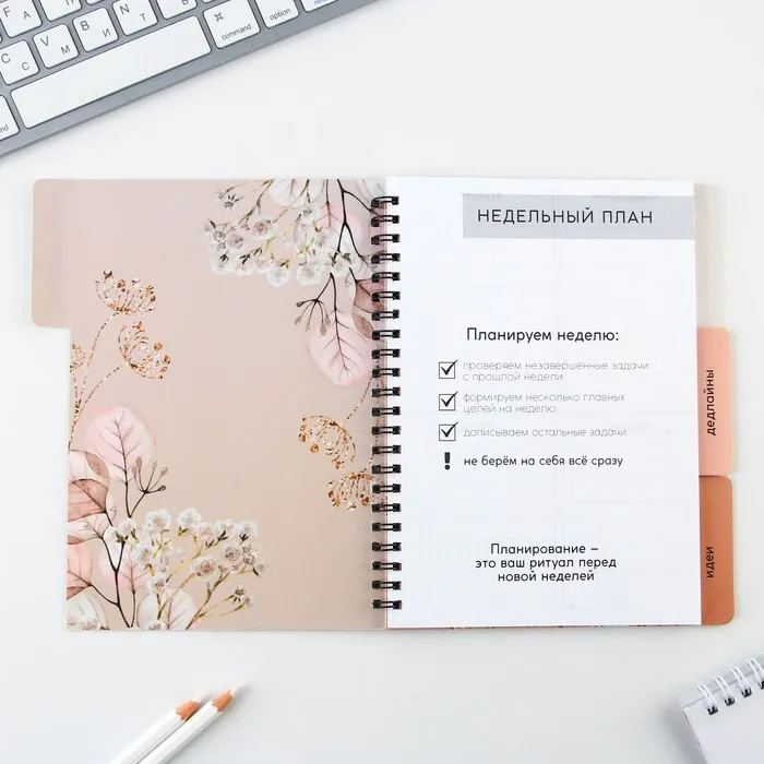 Ежедневник-планинг - незаменимый инструмент управления временем. Помощник для тех, кто выполняет много различных задач, хочет видеть свои планы сразу на неделю вперед, отмечать главное и расставлять приоритеты в делах.