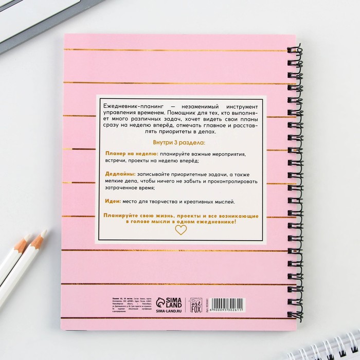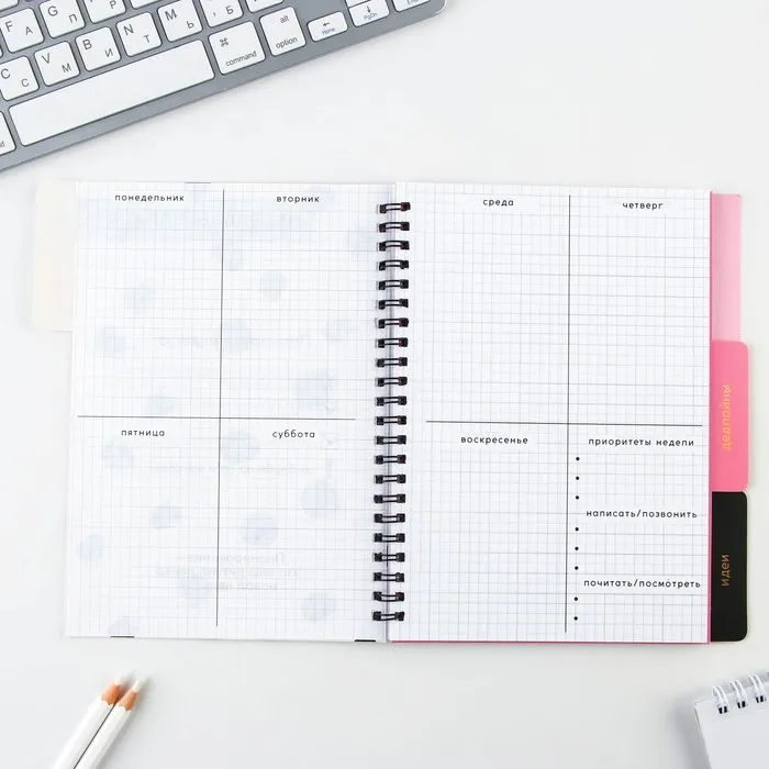 Ежедневник-планинг - незаменимый инструмент управления временем. Помощник для тех, кто выполняет много различных задач, хочет видеть свои планы сразу на неделю вперед, отмечать главное и расставлять приоритеты в делах.