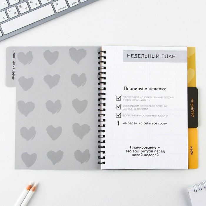 Ежедневник-планинг - незаменимый инструмент управления временем. Помощник для тех, кто выполняет много различных задач, хочет видеть свои планы сразу на неделю вперед, отмечать главное и расставлять приоритеты в делах.