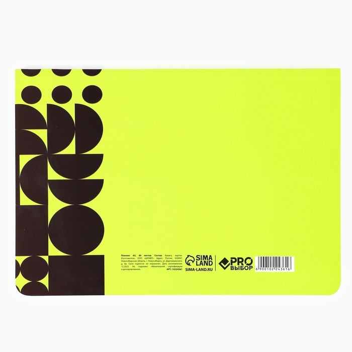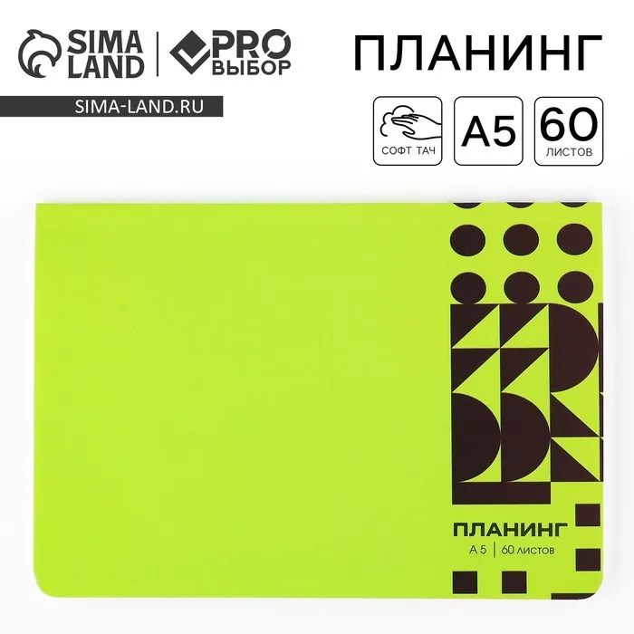 Планер в мягкой обложке софт-тач А5, 60 листов PROвыбор «Зеленый» — Характеристики