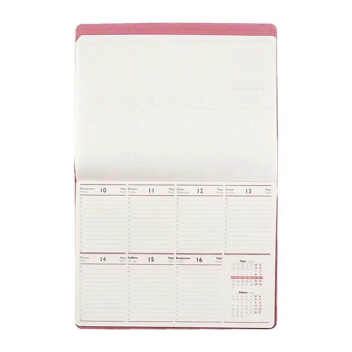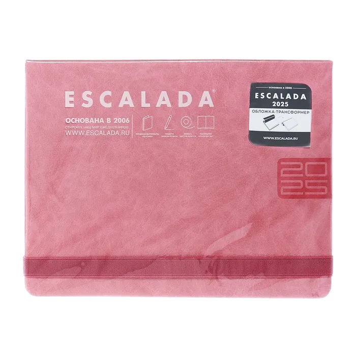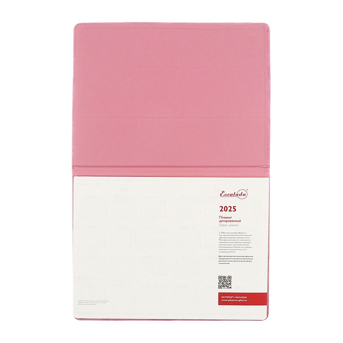 Планинг датированный 2025 года, 250 х 190мм, 54 листа на склейке, твердая обложка, ESCALADA, искуственная кожа, блок тиснение, блок 70, розовый — Характеристики