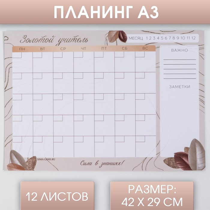 Планинг «Золотой учитель», А3, 12 листов — Характеристики