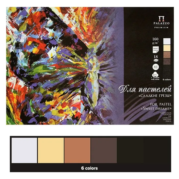 Планшет для пастели А3, 18 листов, 6 цветов "Сладкие грёзы", тиснение "холст", блок 160 г/м² — Характеристики