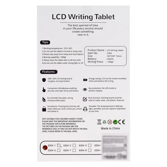 Планшет для рисования LCD, «Дино», с ручкой — Характеристики
