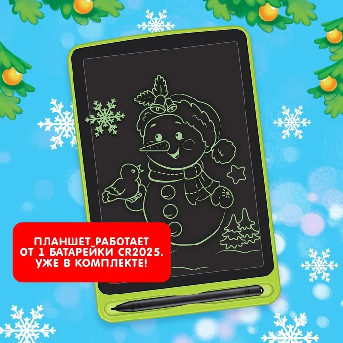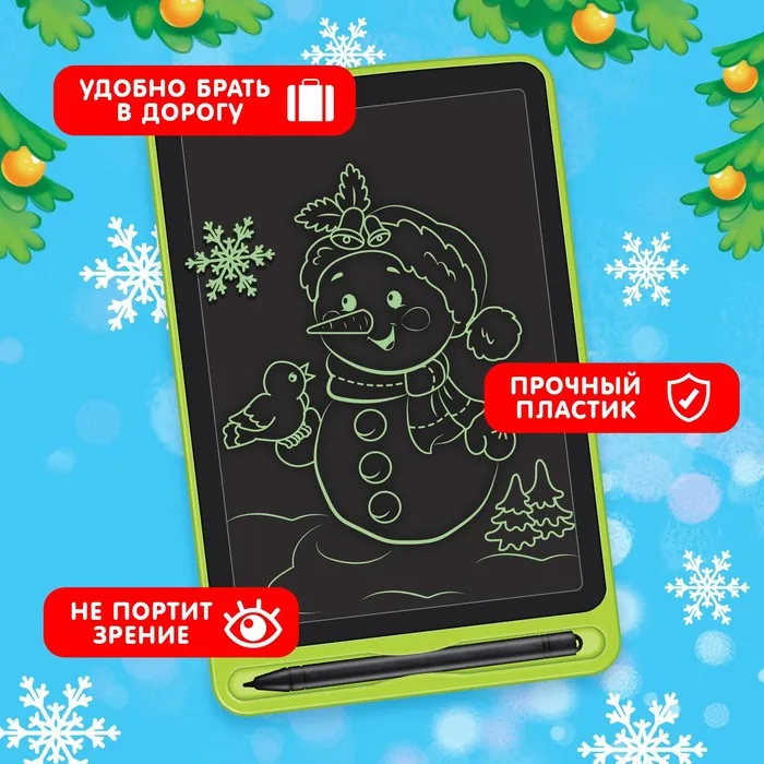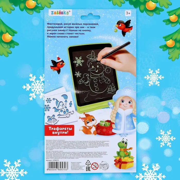 Детский LED-планшет для рисования оживит любые фантазии. В распоряжении малыша есть экран и волшебная ручка, а значит, он может отправиться в новогоднее путешествие вместе с Дедом Морозом, Снегурочкой, Снеговичком, нарядить ёлочку и повстречать добрых весёлых зверят.