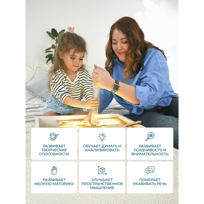 - Детсадовцам тренировать ловкость пальчиков с помощью светового планшета и песка очень полезно. Одновременно с моторикой развивается речь. Совершенствуется графомоторика.