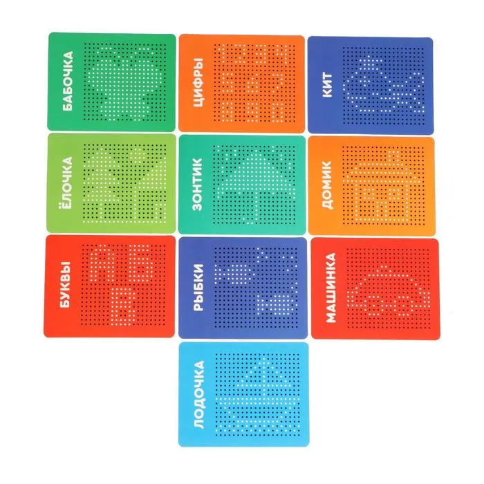 Планшет обучающий «Магнитное рисование» зелёного цвета с 380 отверстиями станет отличным инструментом для развития фантазии и координации у детей. Этот планшет позволяет создавать разнообразные изображения с помощью магнитного стилуса и металлических шариков, превращая обучение в увлекательную игру.