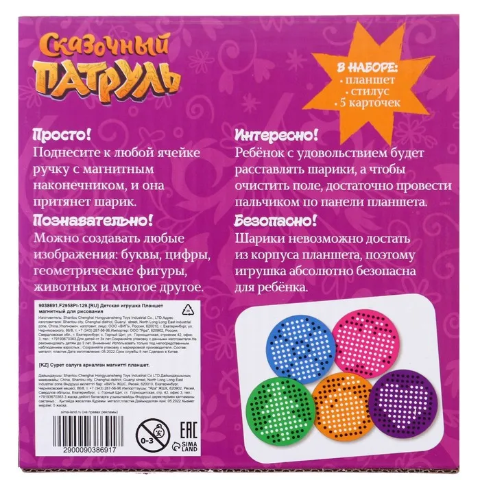 Планшет обучающий «Магнитное рисование: Сказочный патруль», 120 отверстий, цвет чёрный — Характеристики