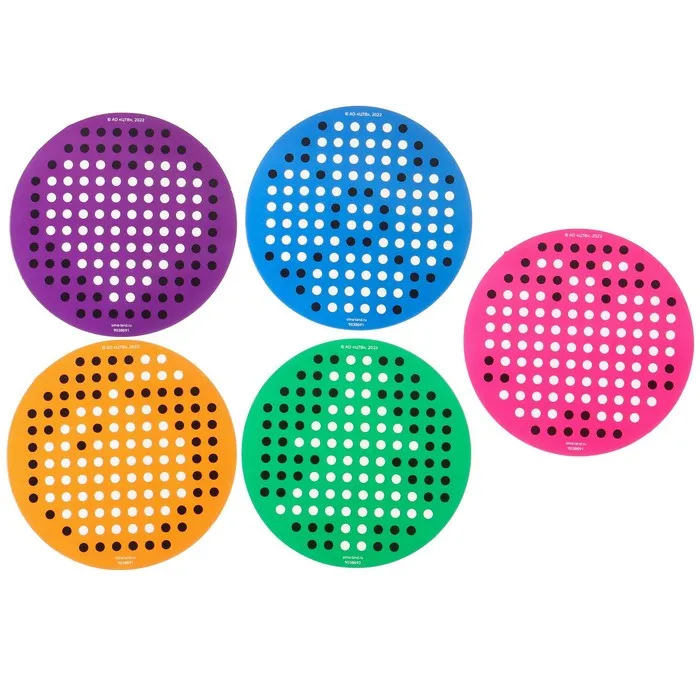 - В комплекте 5 карточек. Можно создавать свои композиции или следовать готовым схемам. Это помогает распознавать фигуры, сравнивать формы, запоминать цвета.