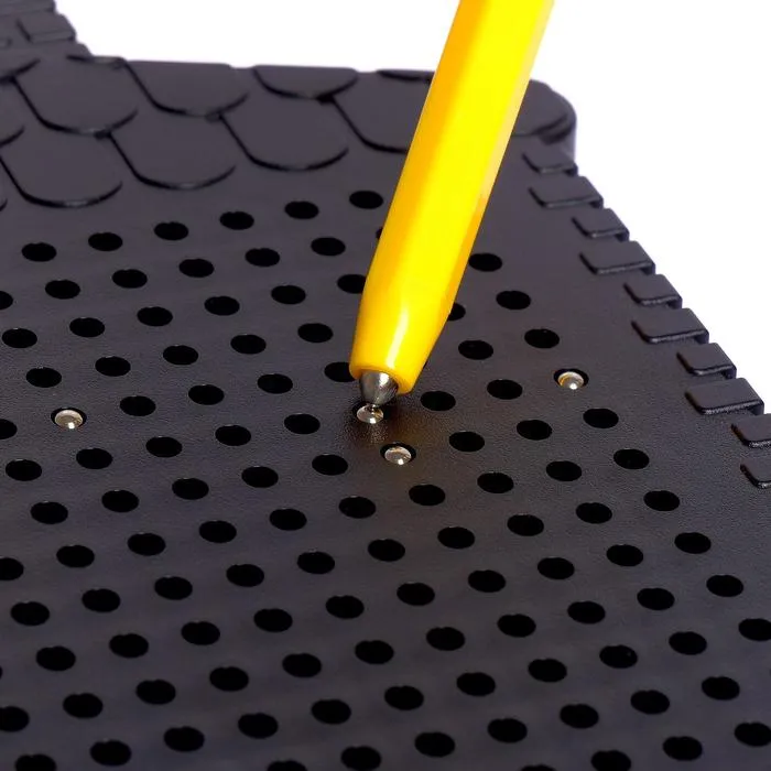 Планшет обучающий «Магнитное рисование» красного цвета с 375 отверстиями станет отличным инструментом для развития фантазии и координации у детей. Этот планшет в виде домика позволяет создавать разнообразные изображения с помощью магнитного стилуса и металлических шариков, превращая обучение в увлекательную игру.