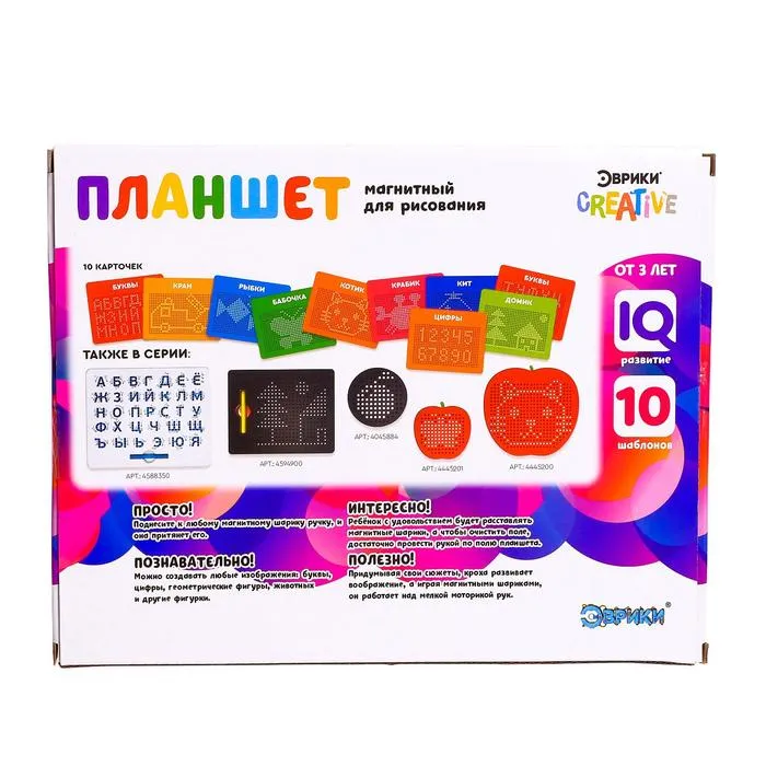 Планшет развивает мелкую моторику, зрительную память и координацию движений. Использование магнитного стилуса и металлических шариков делает процесс рисования увлекательным и обучающим одновременно. Родители могут быть уверены в безопасности материалов, так как планшет изготовлен из прочного пластика.