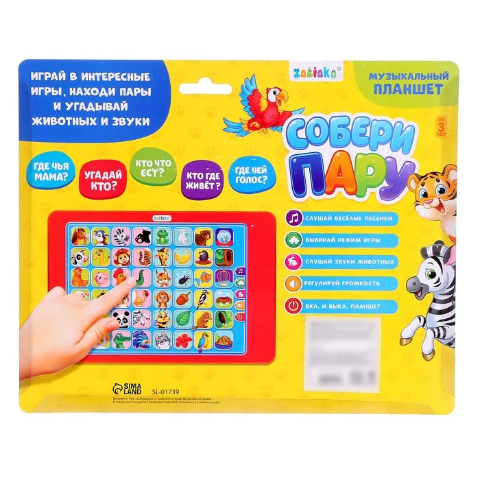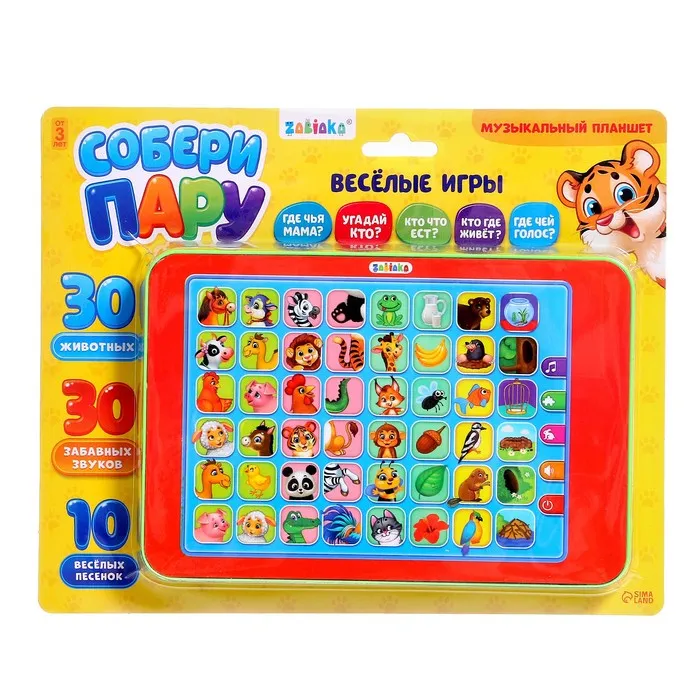 Планшет развивающий музыкальный «Собери пару», работает от батареек — Характеристики