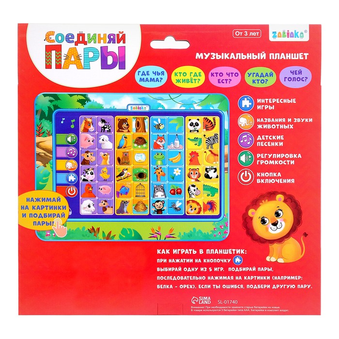 Планшет развивающий «Соединяй пары», звуковые эффекты, работает от батареек — Характеристики