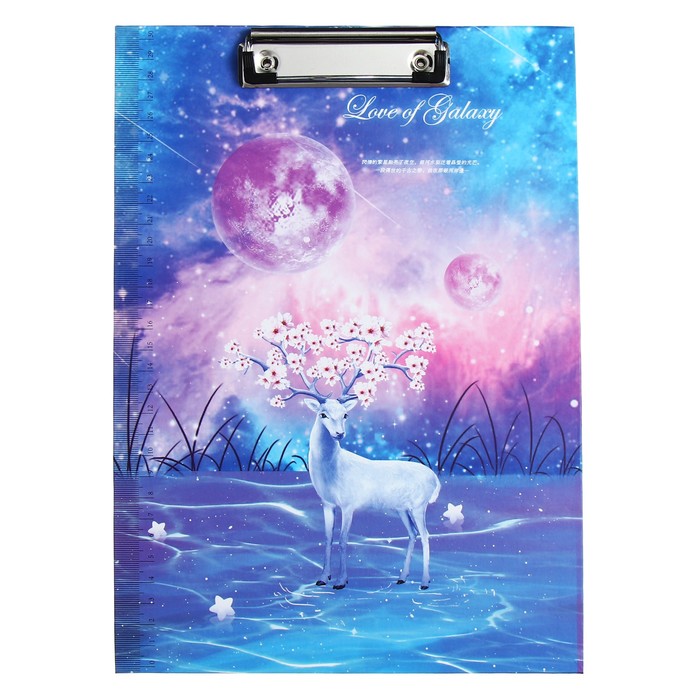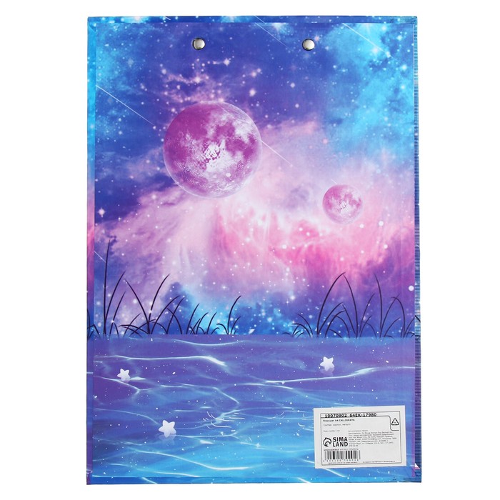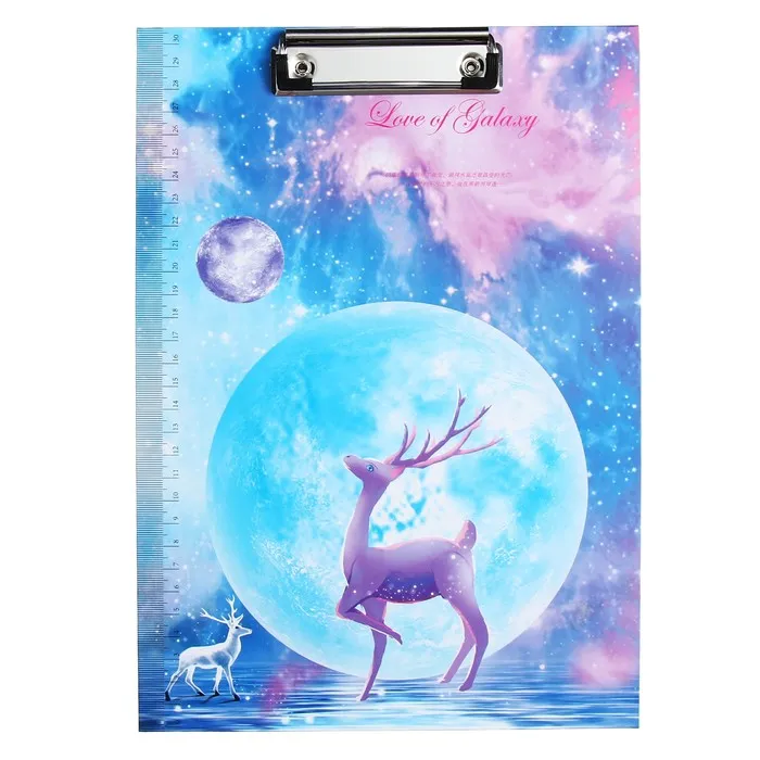 Космический планшет оснащён удобным зажимом, который надёжно держит до 80 листов. Яркий принт придаёт ему особую визуальную привлекательность и станет отличным акцентом в вашем офисе или учебном пространстве.