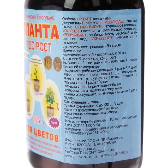микроэлементов и предназначен для подкормки и стимуляции корнеобразования и роста декоративных и садово-ягодных культур.Удобрение укрепляет иммунитет растения и является хорошим антидепрессантом для растений.