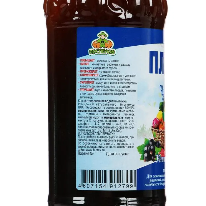 Биогумус ПЛАНТА это органическое удобрение получено методом биоферментной переработки натурального органического биогумуса (куриного помета) и содержит все необходимые для растений макро- и микроэлементы, клетчатку, белки, аминокислоты, метаболиты и др. (см. раздел технология производства).