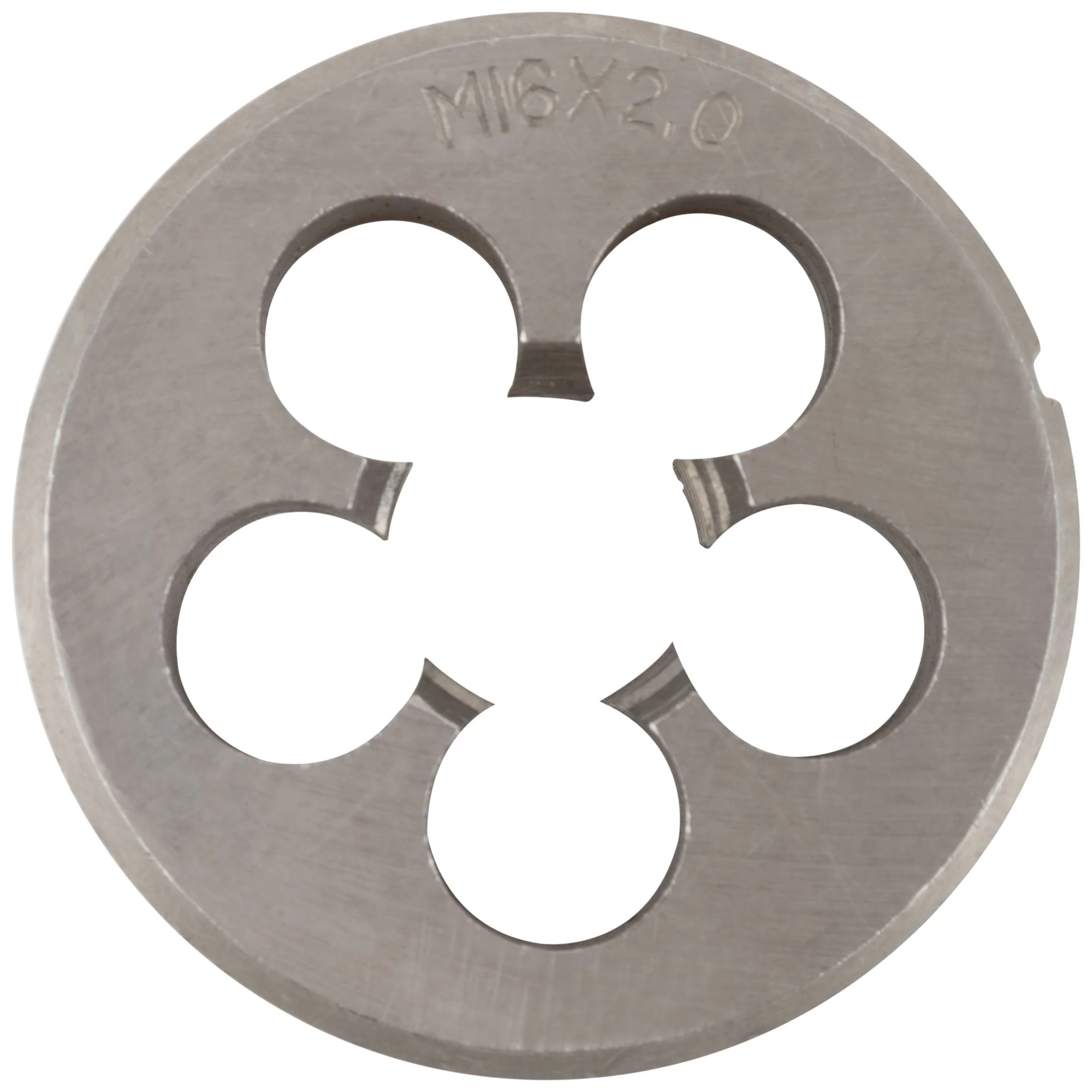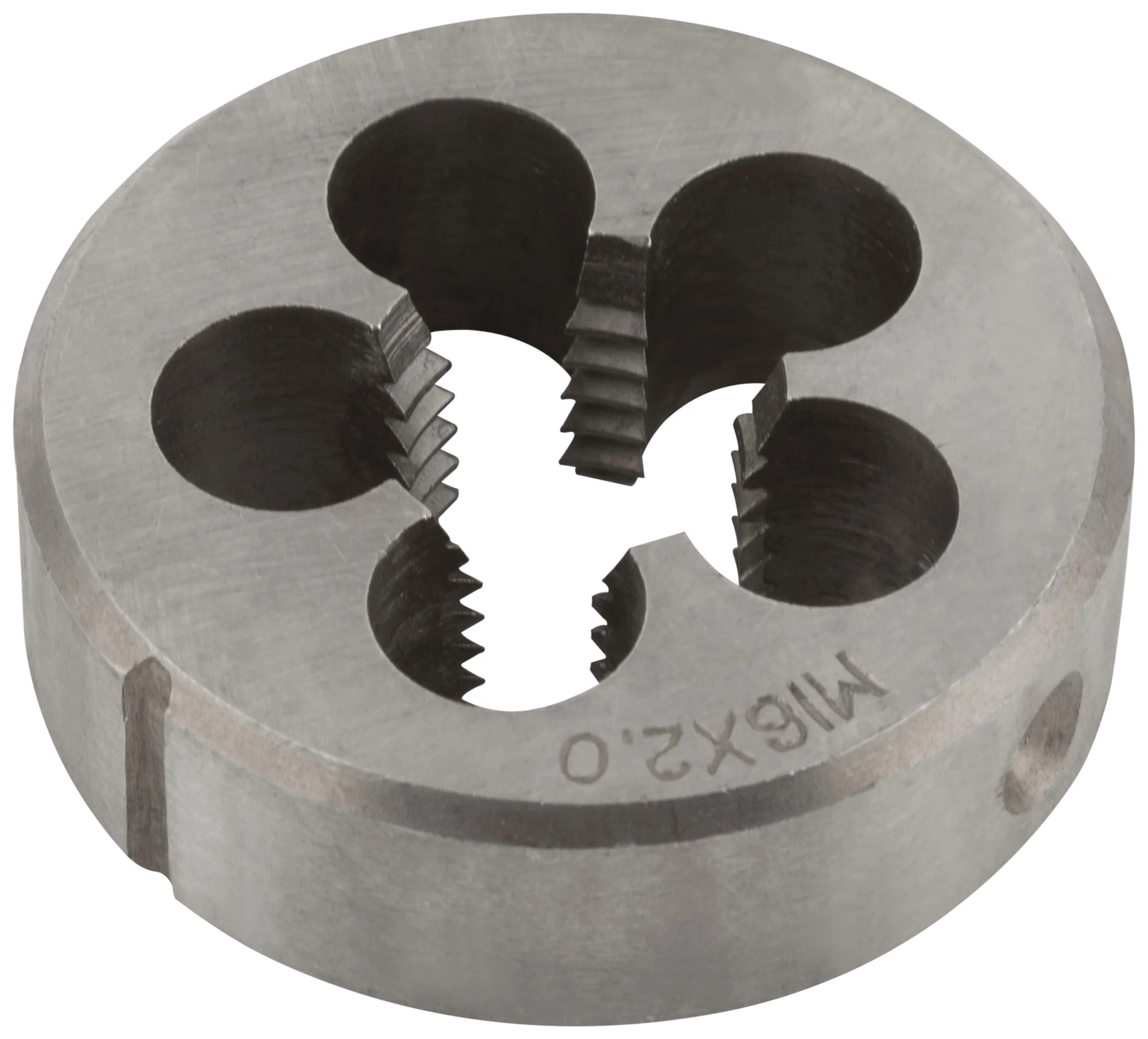 Изделие изготовлено из легированной стали с закалкой до HRC 58-60, что гарантирует его прочность и износостойкость. Плашка имеет типоразмер M16 x 2,0 мм и диаметр 38 мм, что делает её подходящей для широкого спектра задач в строительстве и машиностроении.
