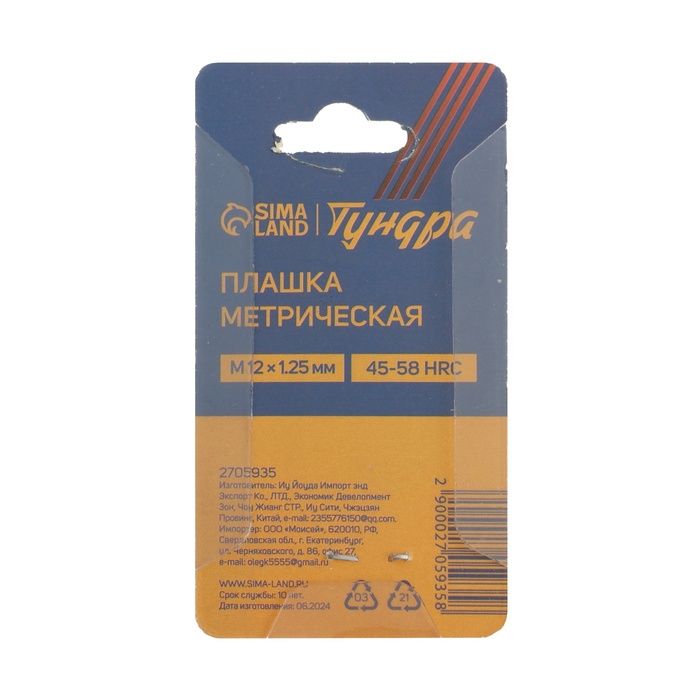 Плашка метрическая ТУНДРА, М12×1.25 мм — Характеристики