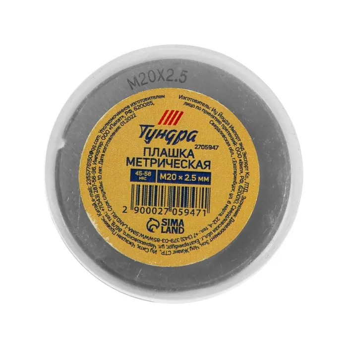 Плашка метрическая ТУНДРА, М20×2.5 мм — Характеристики