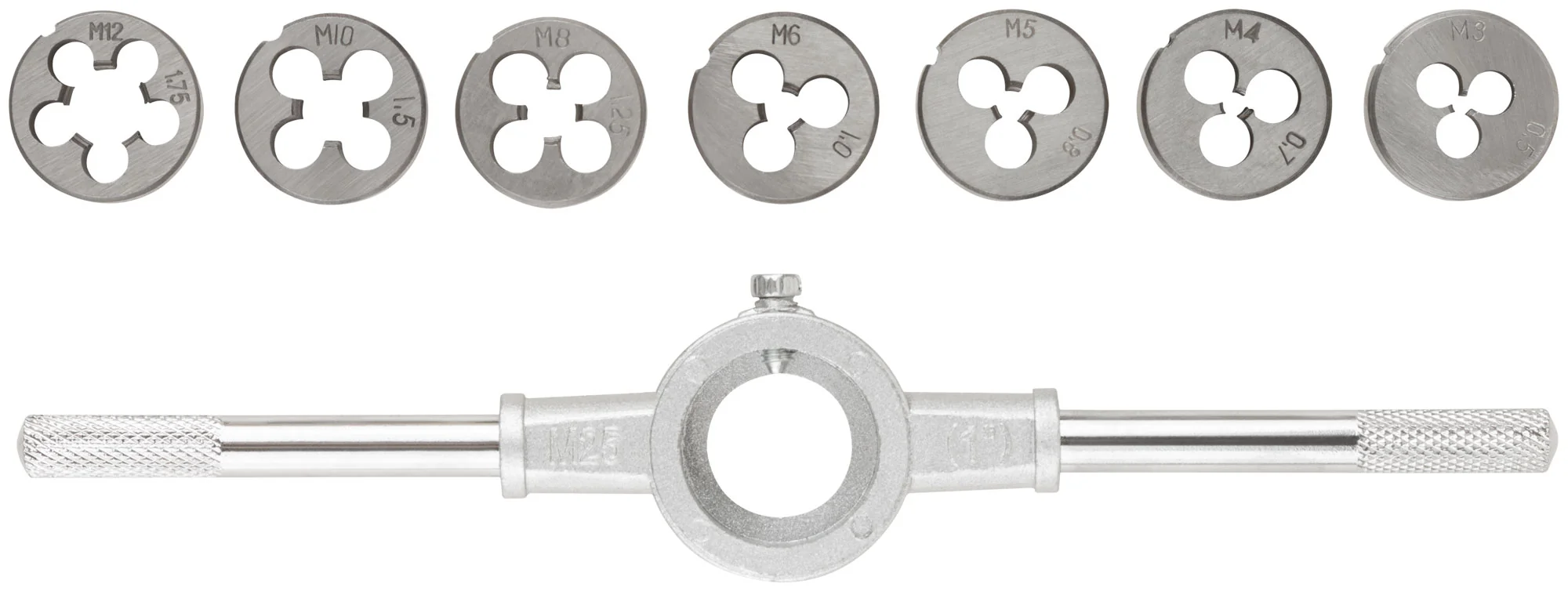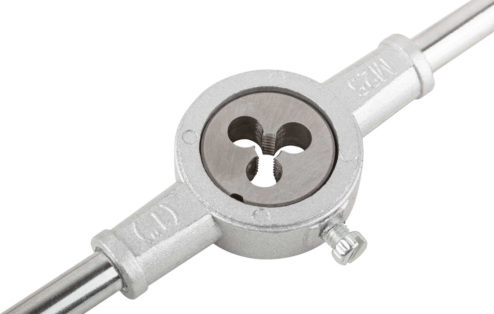 - Плашкодержатель из инструментальной стали и цинкового сплава для надежности.